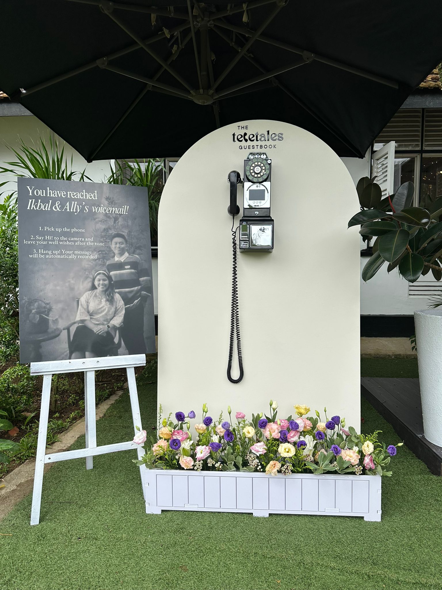Add a touch of charm to your event space with our bespoke bloom box arrangement featuring a curated mix of fresh flowers and elegant foliage. This was designed specifically for a guest phone booth. It enhances the booth with soft, welcoming tones, perfect for photos, greetings, and heartfelt messages. A beautiful detail that elevates your event’s ambience and leave a lasting impression.